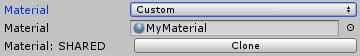Custom Material: Assign any material you want. After assigning there will appear a “Clone” Button. You want to clone a material if you want to change properties of it only for that image and the original material should keep the original values.