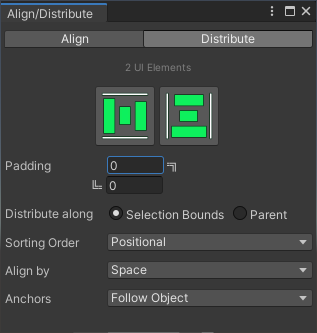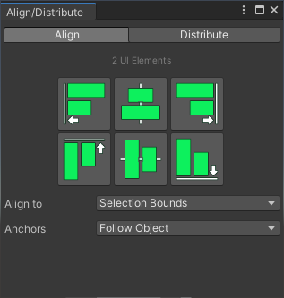 With the Align and Distribute Window, these tasks become a lot easier. You just select the UI elements you want to align or distribute and click a button.