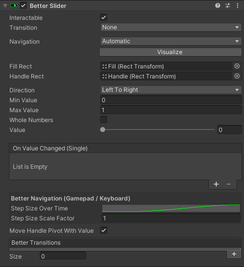 A Better Slider works exactly like a normal Slider but has Better Transitions in addition.