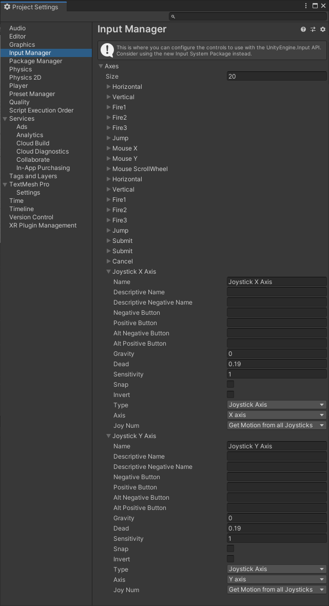 The Legacy Input module requires Joystick axis mappings in order to detect if a joystick (or gamepad) was causing the input. If this is not specified correctly, you will see errors in the logs.