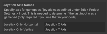 - Replace "horizontalAxis" and "verticalAxis" with the fields used by your input module for navigation.