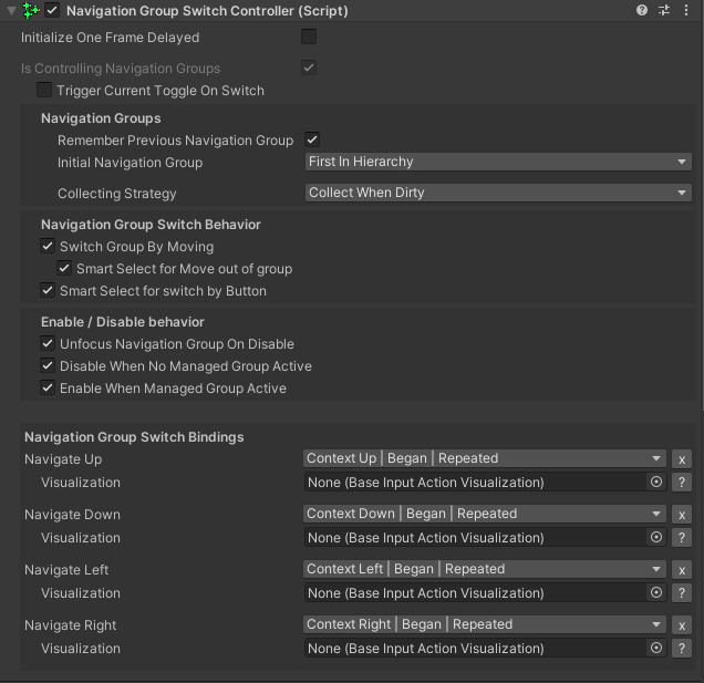 If checked, the user can use the default navigation method to switch between groups (for gamepad: Usually the left stick). If not checked, the group can only be switched by using the "Navigation Group Switch Bindings" (see below).