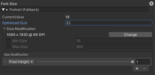 - Size Modification (List): Contains Setting entries of how the size should be calculated. If the list is empty, the size will always be the optimized size.